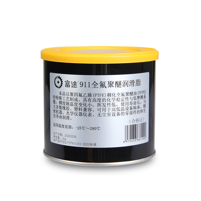 FOTU®富途®911以聚四氟乙烯(PTFE)稠化高度化學穩定性的全氟聚醚油(PFPE),并添加特種抗腐蝕添加劑,經特殊工藝精制而成。